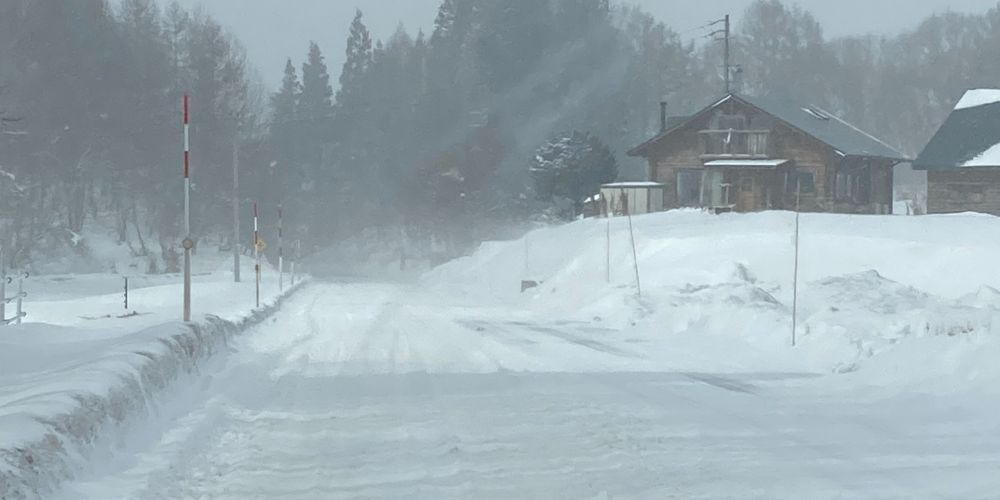 市街地からほんのわずかな距離にもかかわらず、足を踏み入れた瞬間に景色は一変。吹雪とともに雪が舞い、視界一面が白に包まれる別世界が広がっていました。静まり返った道と深く積もる雪が、この地域ならではの厳しくも美しい冬の表情を映し出しています。